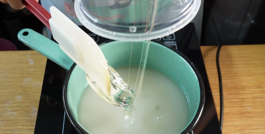 Estos aditivos los puedes mezclar aparte y cuando ya esté el jarabe listo asegúrate de que no haya grumos o partes sin disolver.
