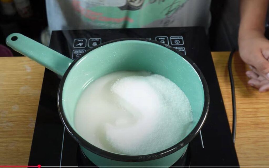 Debe de quedar una mezcla traslúcida sin cristales de azúcar o quemada, es por eso que nunca llega hervor.