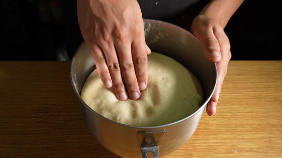 Después de una hora como mínimo de fermentación, la masa se va a ponchar y moldear en el molde donde se vaya a hornear